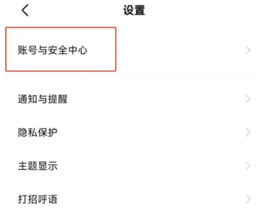 2、在设置页面中,选择并点击“账号与安全中心”。
