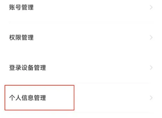 3、进入账号与安全中心后,点击“个人信息管理”选项。