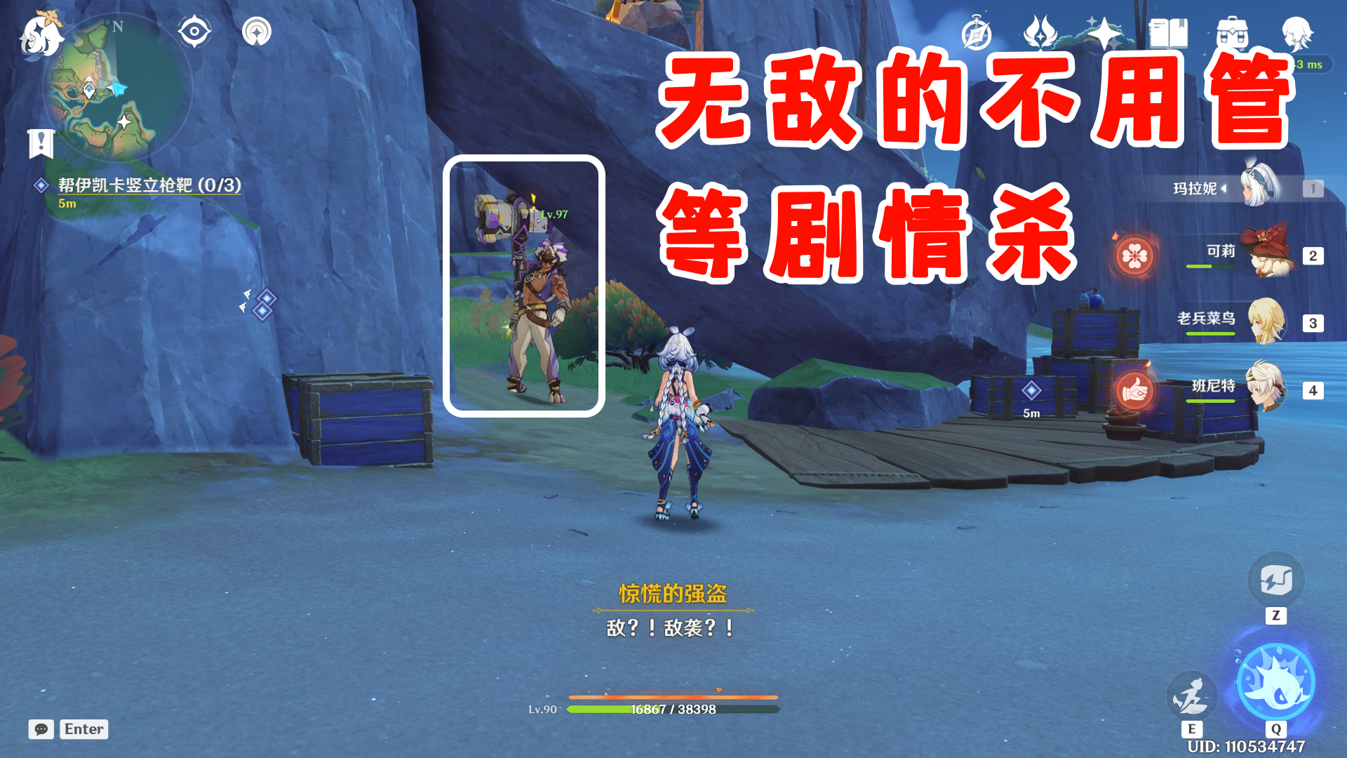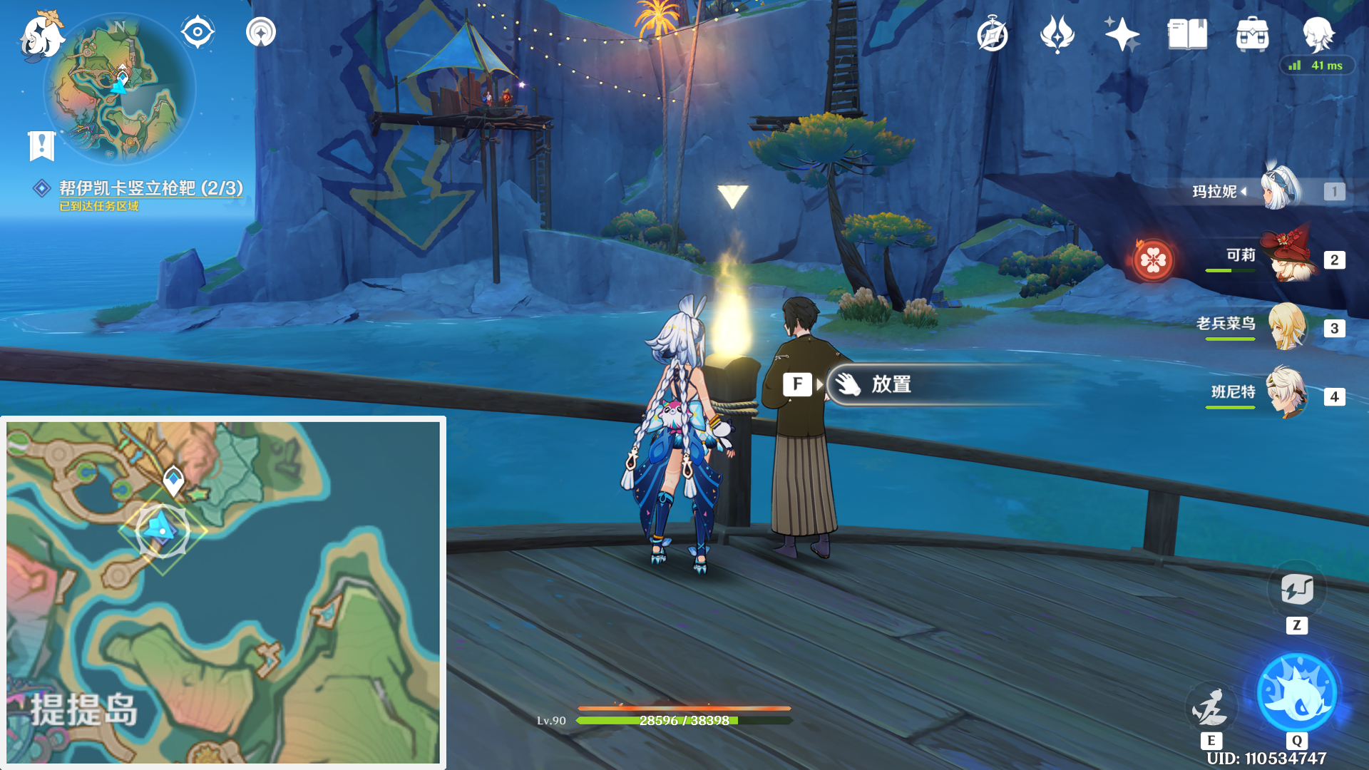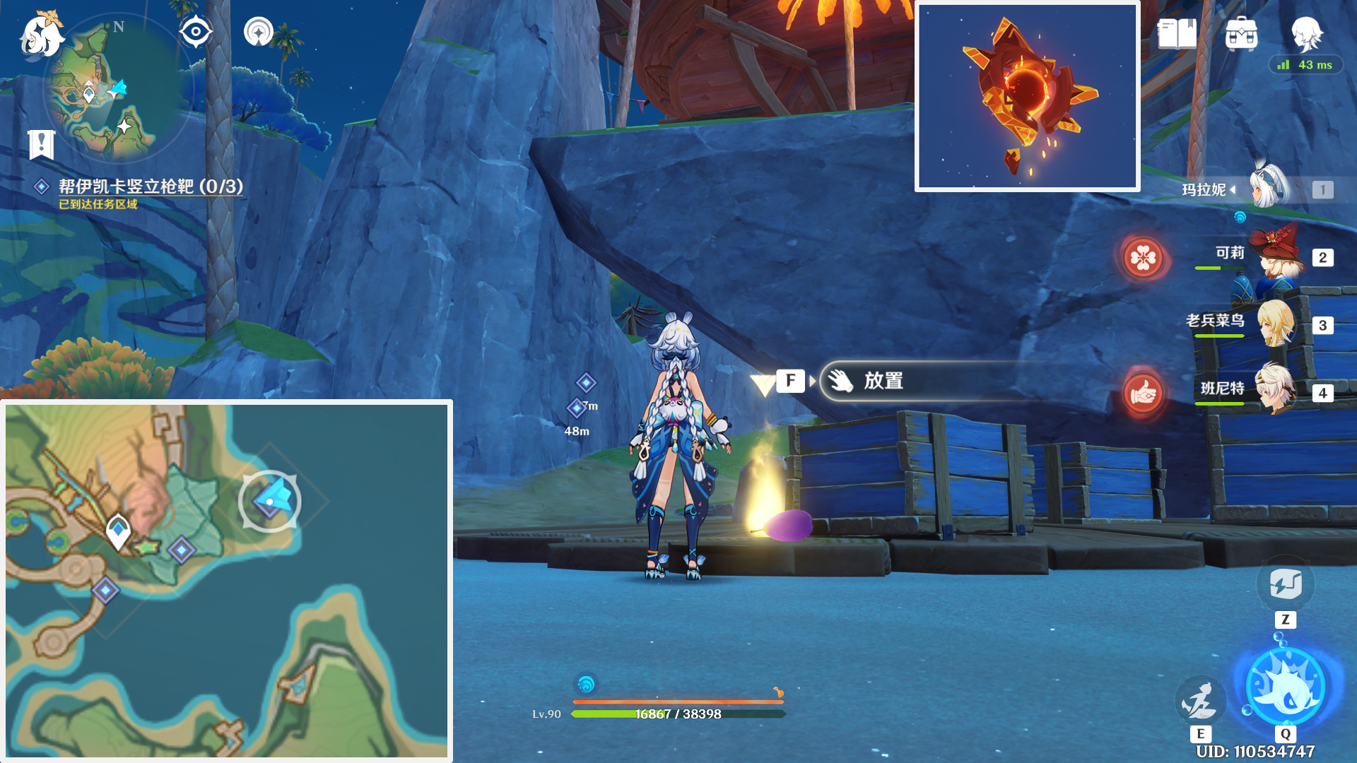 接着需要前往海滩放置三个枪靶,从最东边开始,第一个枪靶就在巨石下方,巨石顶部还有一个神瞳可以收集哦。