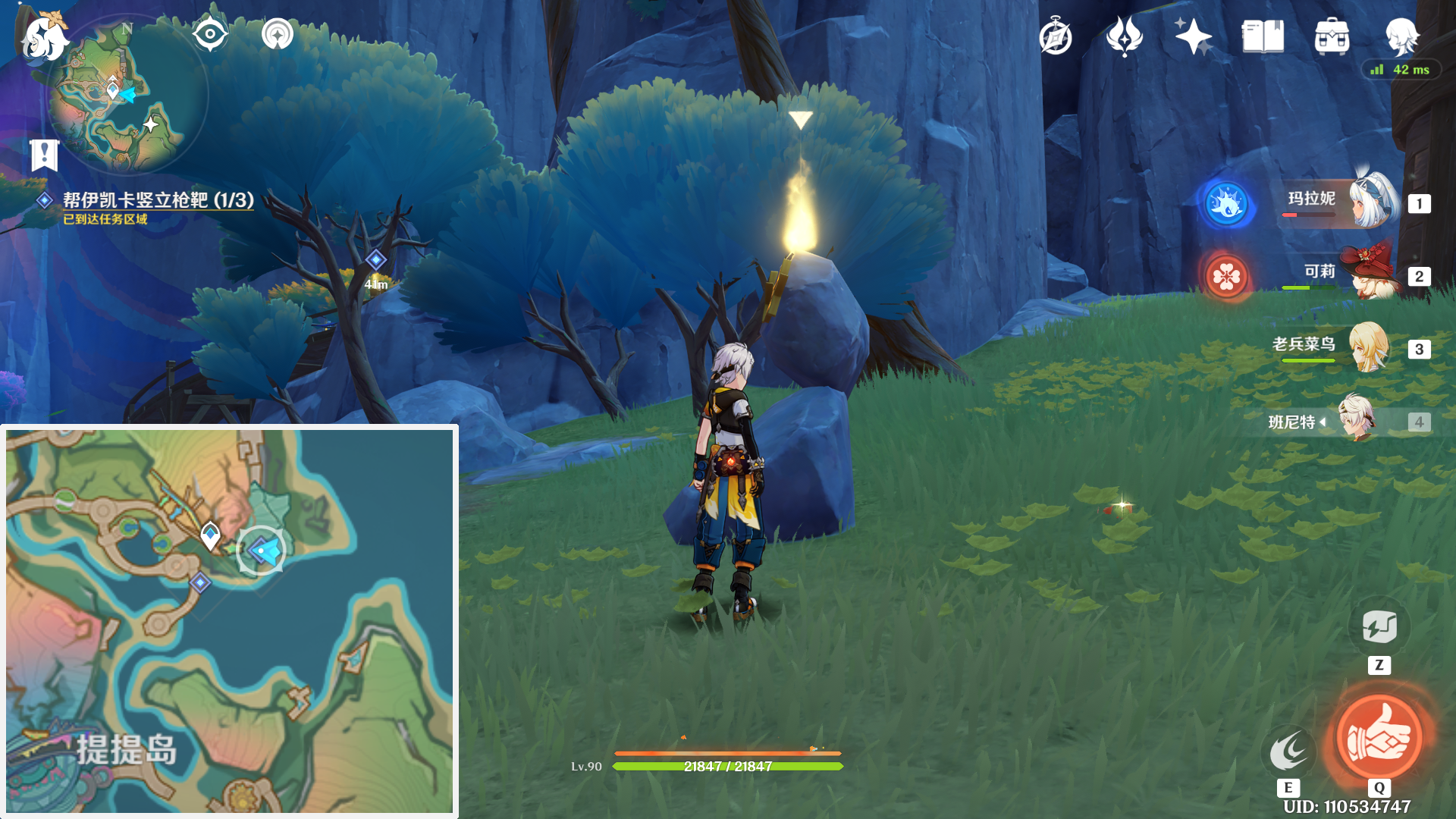 来到「提提岛」东北方的小地图位置,就能看到一个光头NPC「伊凯卡」,与之对话即可接取任务。