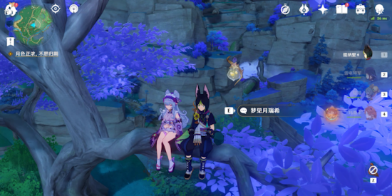 13、秘境通关后,与梦见月在树杈上进行对话,完成任务“梦魇的孑遗”。