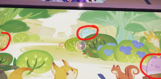 4、在图片所示位置使用光圈寻找并圈出隐藏的小妖怪。