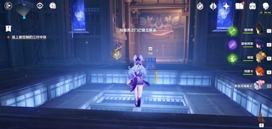12、到达图片位置后,会自动开始剧情,剧情结束后进入“噩梦域阀”秘境。秘境内有两个必拿宝箱,可使用梦见月的小技能飞过去获取。