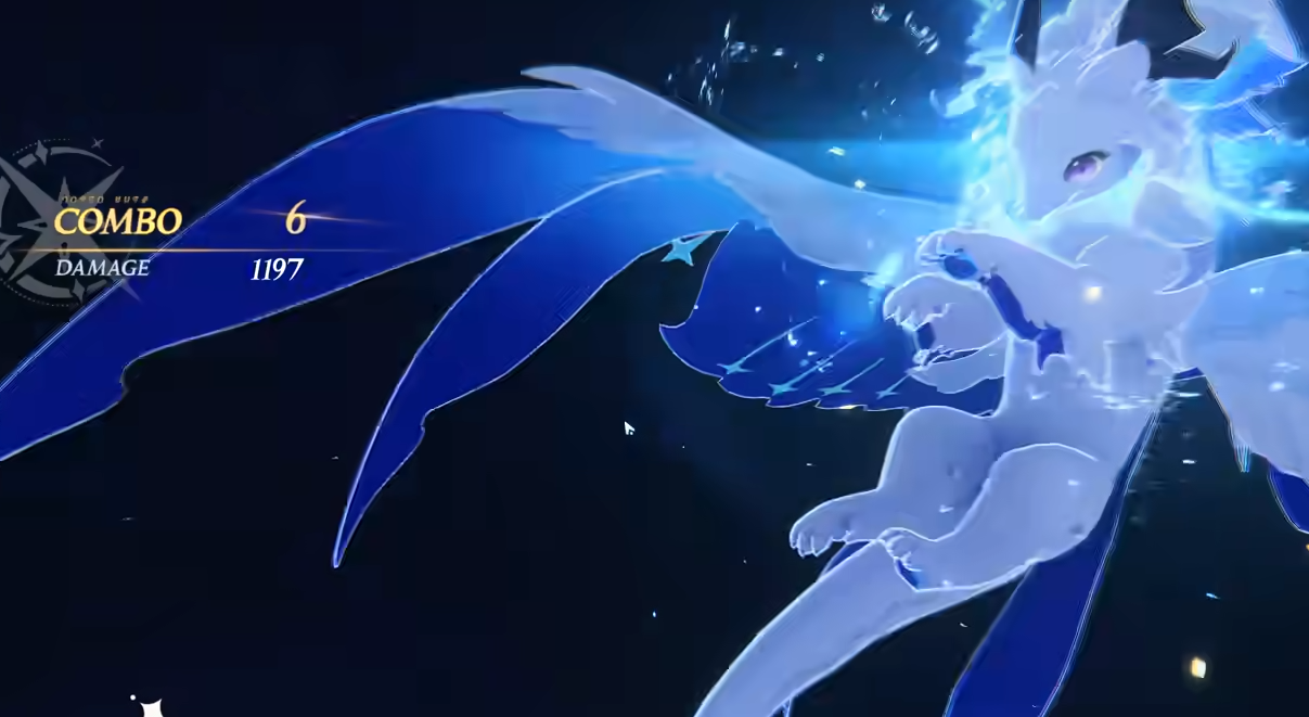 技能“灵龙扫尾”会向目标方向横扫尾巴,掀起激流波浪,对被命中的敌人造成9.1%的水属性伤害,并清空其架势槽。
