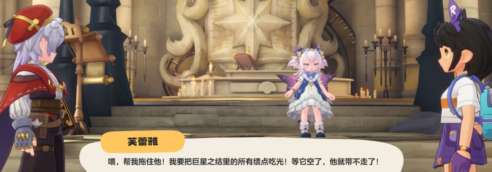 她化作“巨星之结”,将学院中无数学生的愿力凝聚在一起,把冥古龙牢牢封锁在时空的缝隙里。