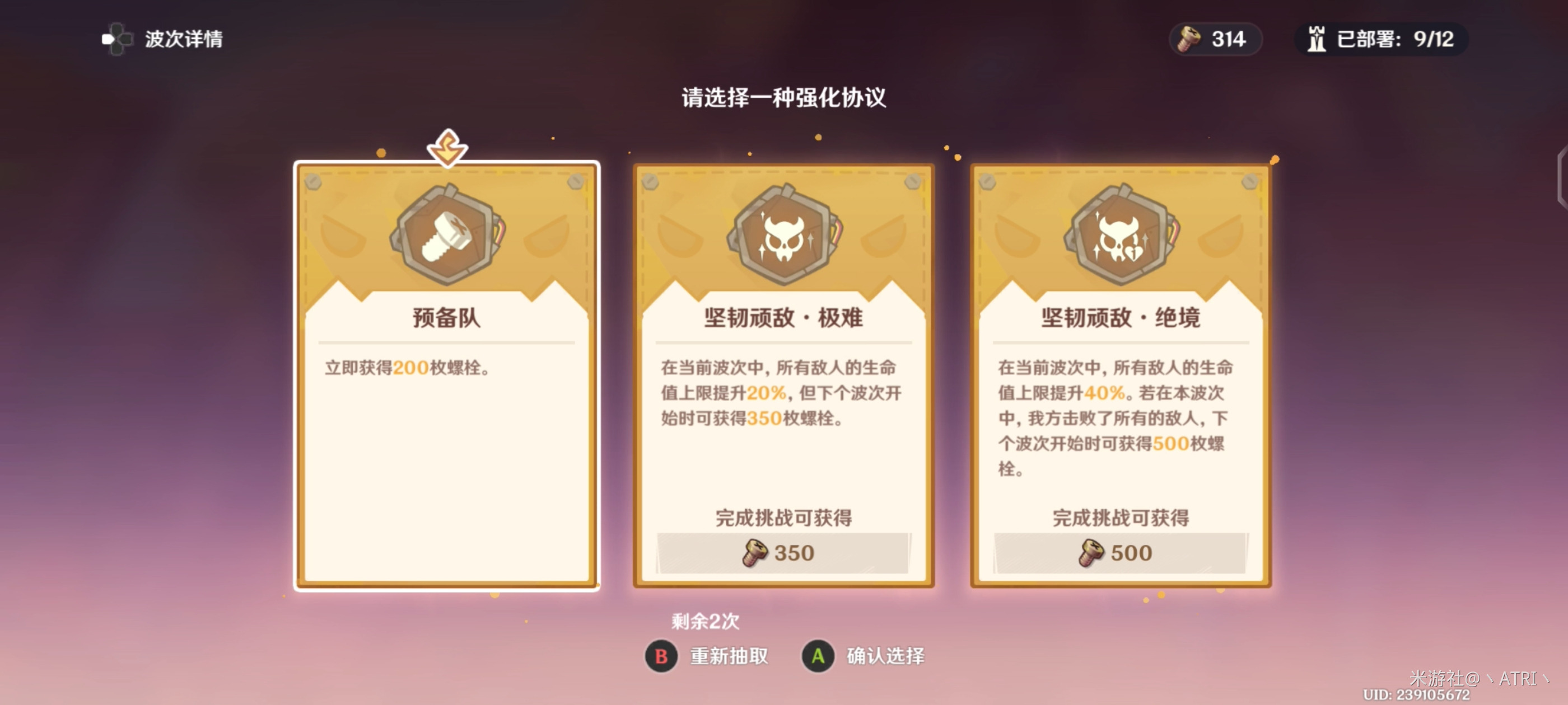 为了不增加关卡难度,可优先选择[预备队]进行强化;