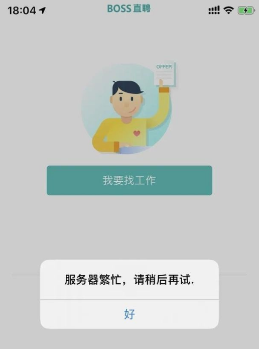 解决方法:将BOSS直聘更新到最新版本后重新登录账号即可(以下提供的用户下载地址为最新版)。