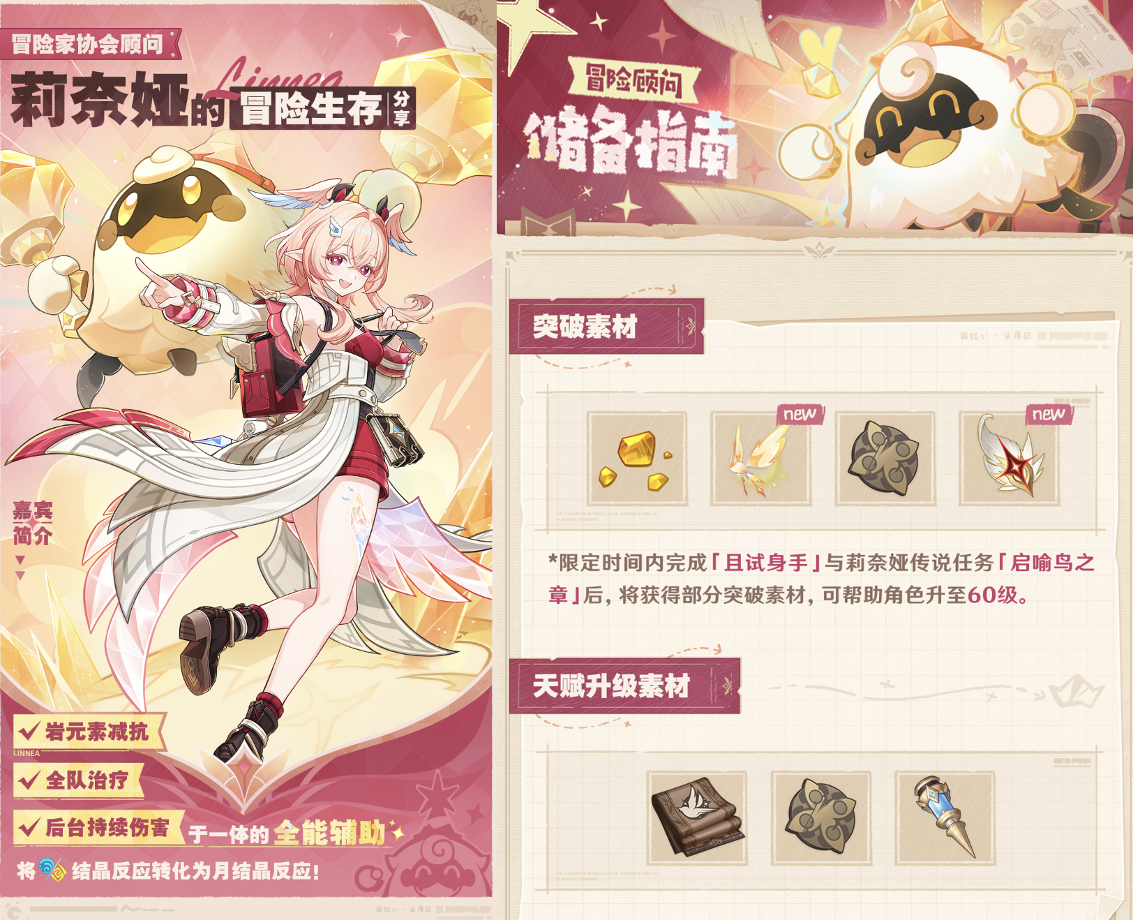 以上就是羊托游小编为你带来的《原神》莉奈娅突破材料汇总的全部内容,更多精彩游戏资讯攻略尽在羊托游手游网,感兴趣的小伙伴欢迎点击关注收藏本网站哦。