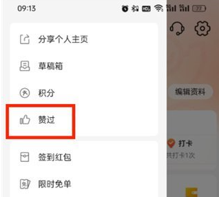 3、随后进入的新页面中包含赞过、积分、草稿箱等功能,这时选择【赞过】。