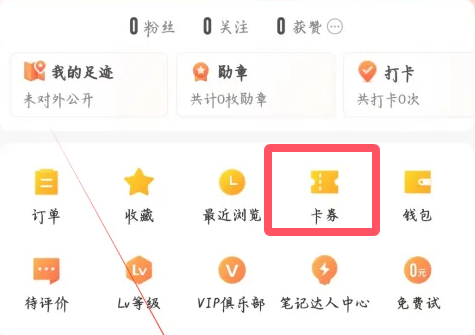 2、接着进入【我的】页面,然后点击【卡券】选项。
