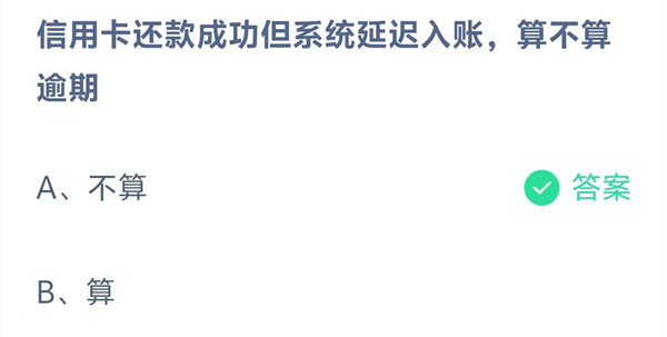 信用卡还款成功但系统延迟入账,算不算逾期?这是今天《支付宝》每日一题的问题,相信我们很多用户都很想知道这个问题的答案是什么?这么一个可以领取饲料的机会相信我们很多用户都不想错过,这里羊托游小编为你带来了2026《支付宝》4月7日每日一题最新答案介绍(1)的全部内容,喜欢的小伙伴欢迎点击进入看看吧。