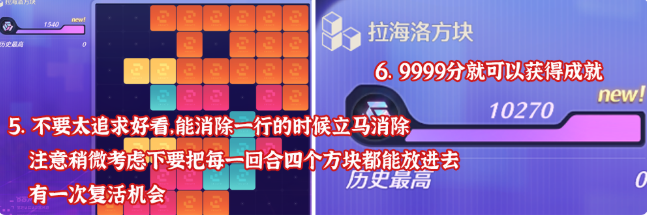 5、不要太追求好看,能消除一行的时候立马消除注意稍微考虑下要把每一回合四个方块都能放进去有一次复活机会