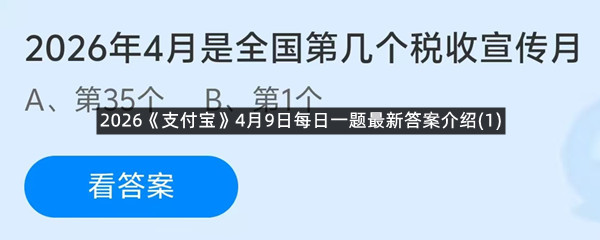 2026年4月是全国第几个税收宣传月?这是今天《支付宝》每日一题的问题,相信我们很多用户都很想知道这个问题的答案是什么?这么一个可以领取饲料的机会相信我们很多用户都不想错过,这里羊托游小编为你带来了2026《支付宝》4月9日每日一题最新答案介绍(1)的全部内容,喜欢的小伙伴欢迎点击进入看看吧。