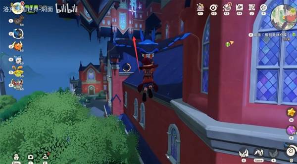 接着继续前进,途中会经过一只大猫,飞过这栋红色房子后,就能看到目的地了。