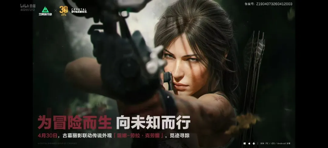 活动期间将推出与古墓丽影联动内容,包括以劳拉为原型的露娜皮肤及相关收集品与武器外观。
