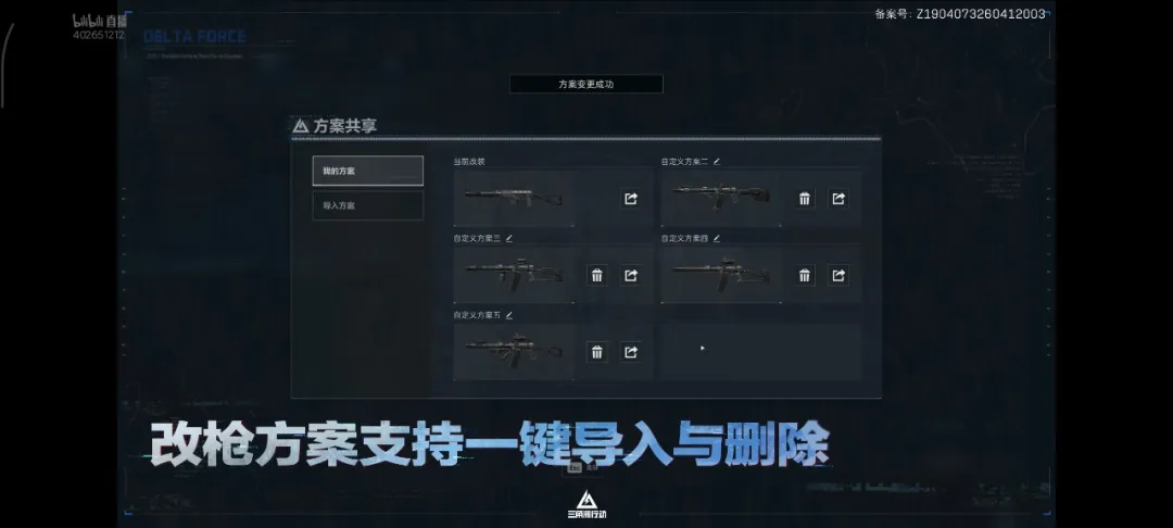新赛季支持改枪方案的一键导入与删除,大幅提升使用便捷性。