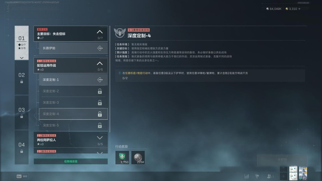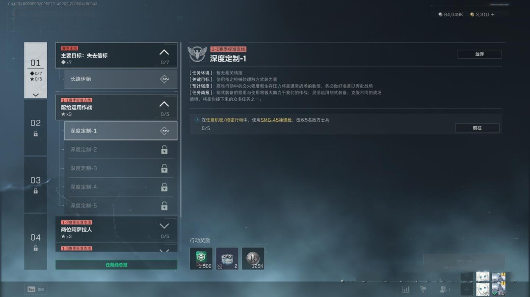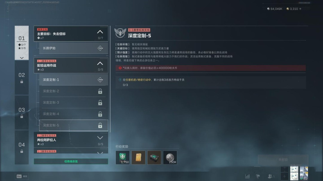 任务目标为达成25万收益成功撤离,同时前往指定区域完成调查,并使用SMG击败5名AI敌人