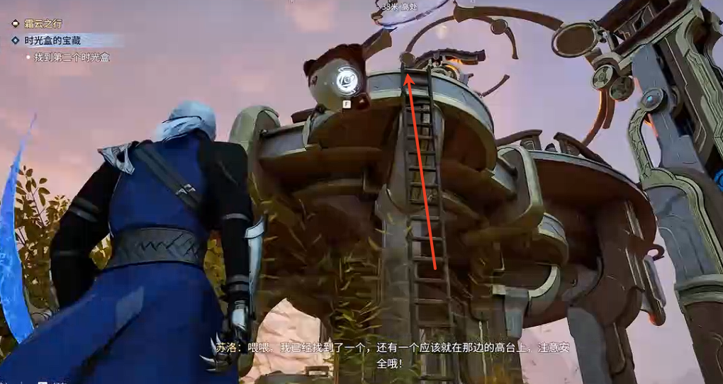 搭乘升降台到达顶部后,向西或西南方向跳跃移动,即可拿到第二个时光盒。