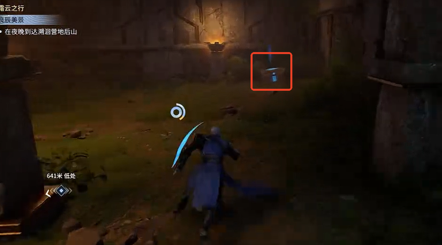 随后朝东方向下到一条小路,再沿着东南方向一路前进,即可到达目标探秘点。