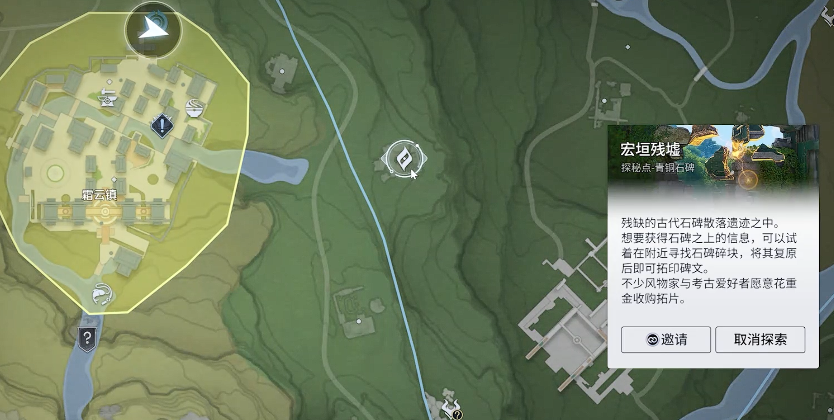任务探秘点:位于古丘城西北区域的宏垣残墟探秘点附近。