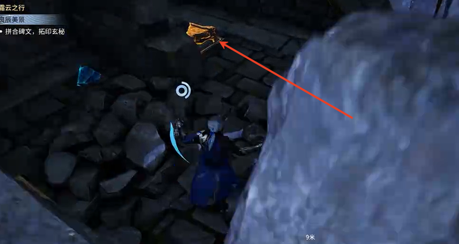 第一块:位于左侧建筑外侧的洞穴中,需要打破标靶开启石门后获取。