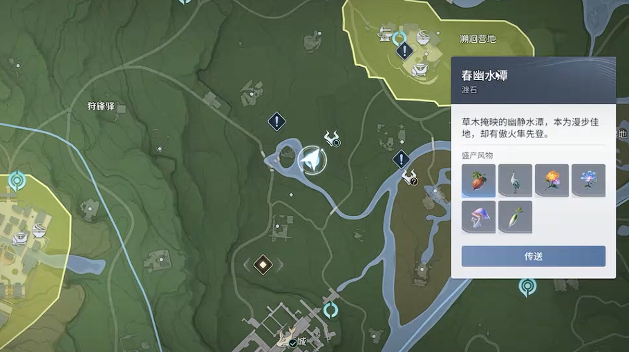 先传送至春溪原区域的春幽水潭,具体位置如图所示。