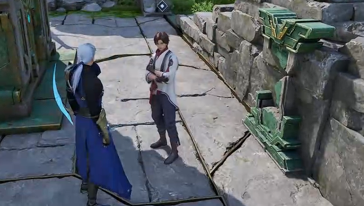 找到NPC长泽进行交谈,从对话中得知需要收集两块石碑碎片。