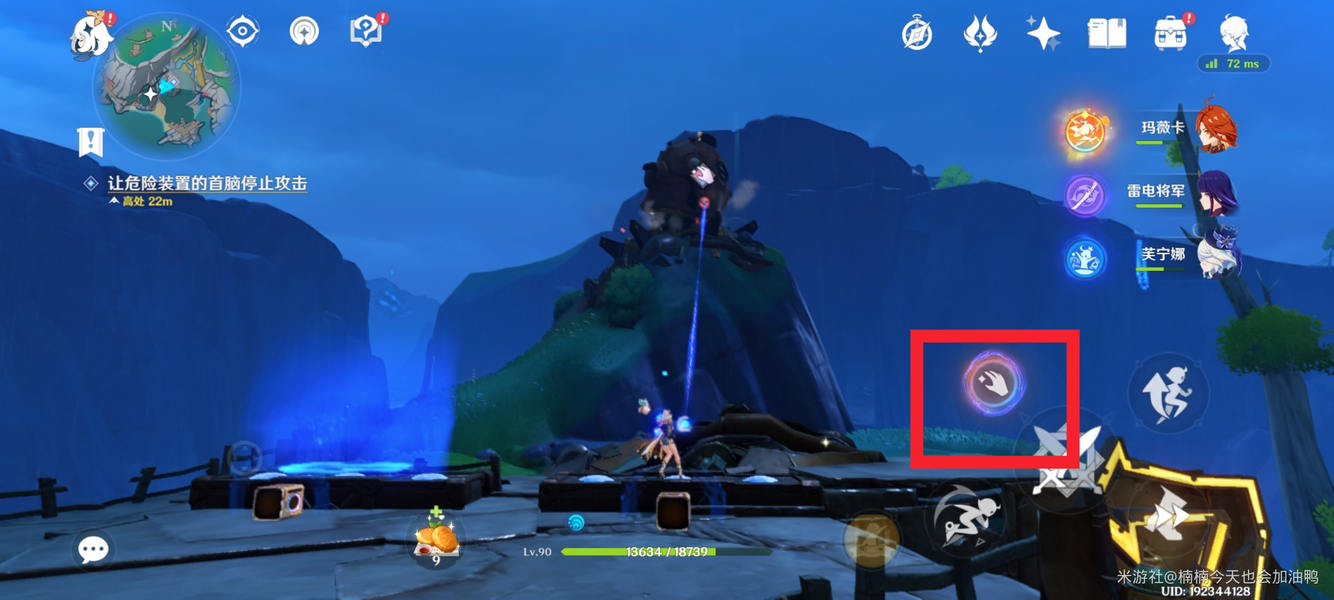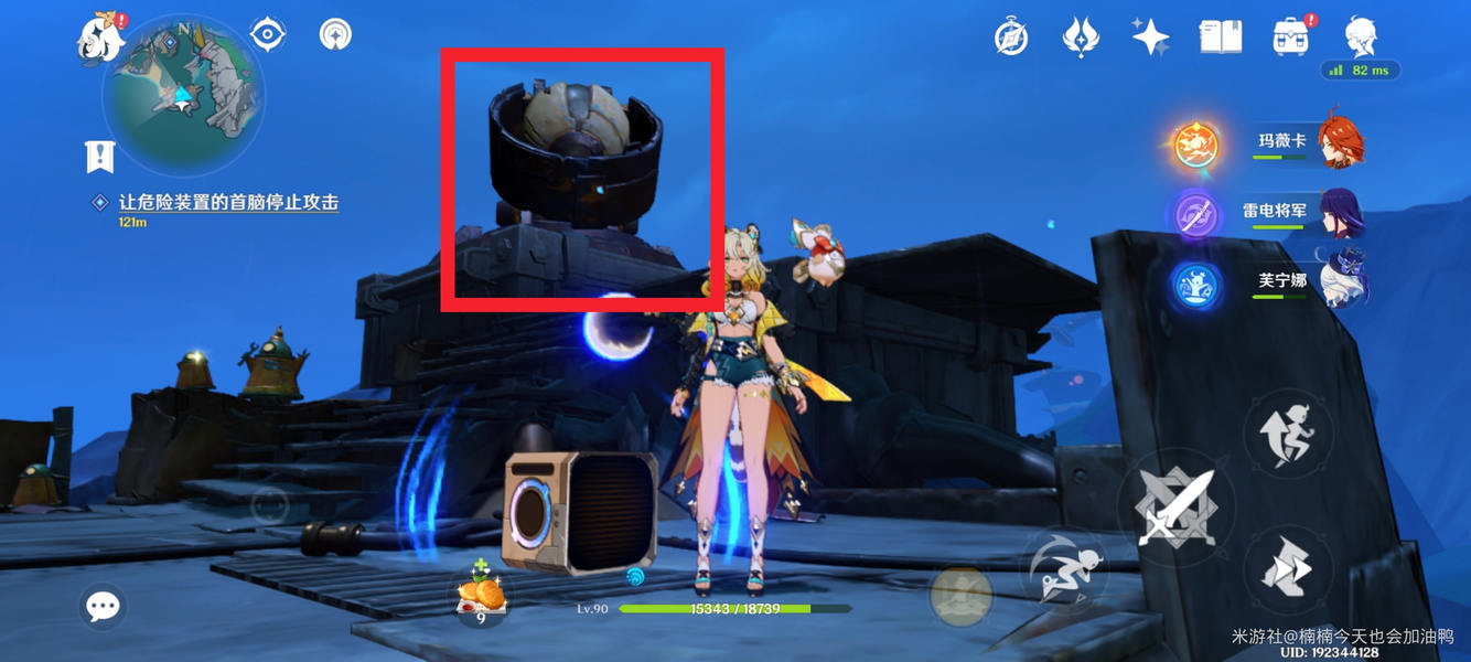 直接冲到前方,靠近台阶上发出蓝光的道具获取月矩力,然后交互大炮。注意,必须处于拥有月矩力的状态才能进行交互