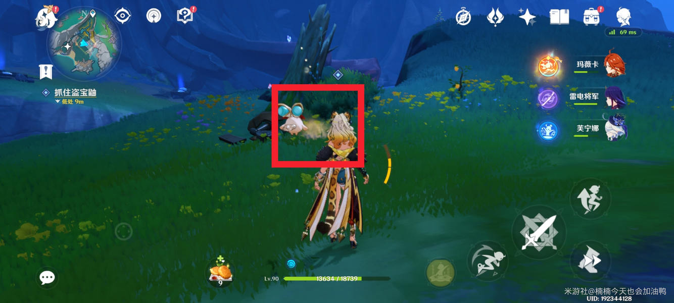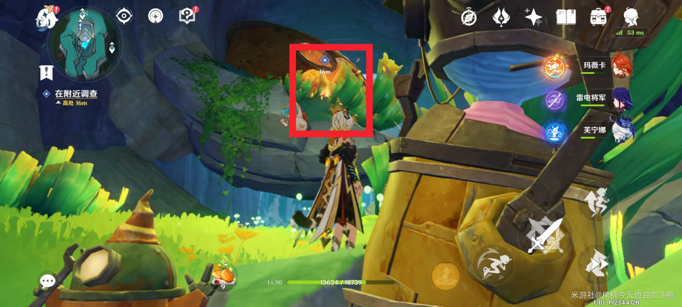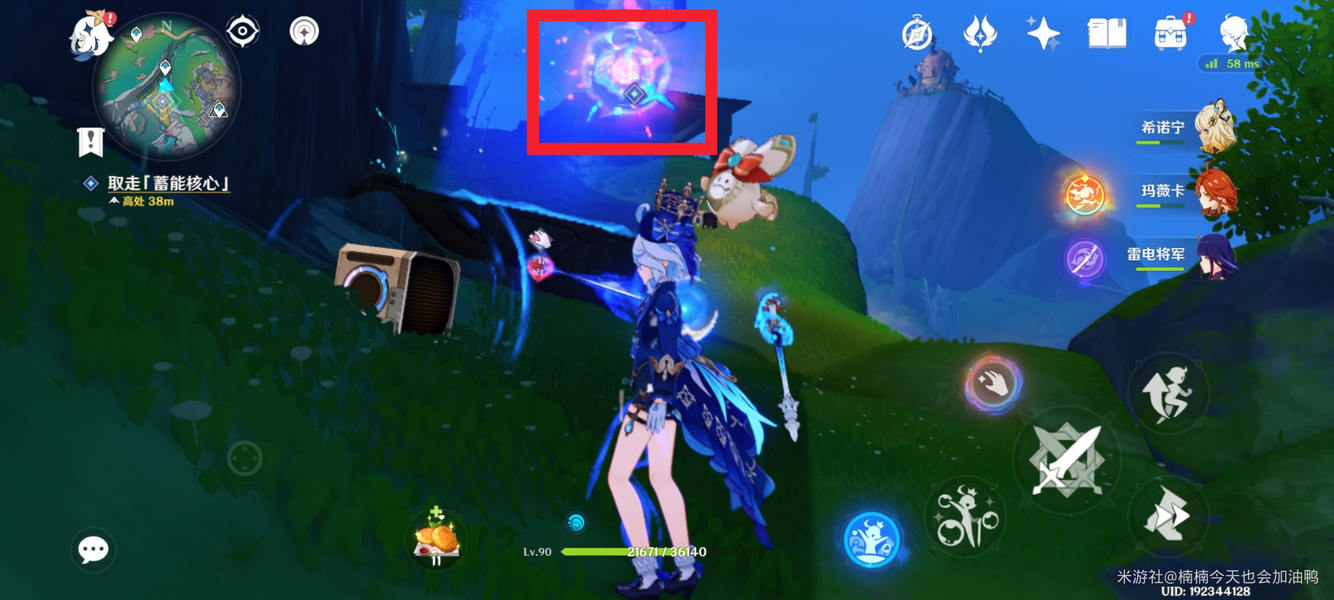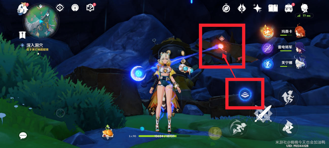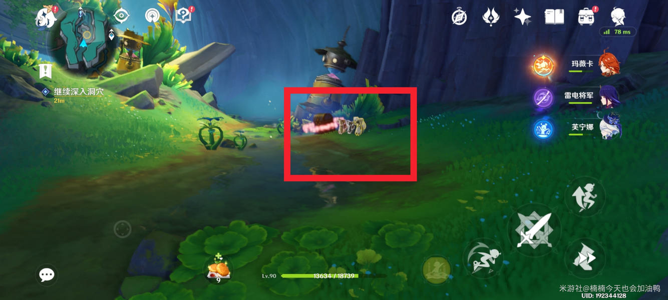 剧情结束后,跟随盗宝鼬来到洞口,在亮亮的植物旁获取月矩力,然后与门口的红色光点交互以开启洞口