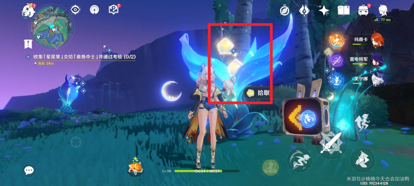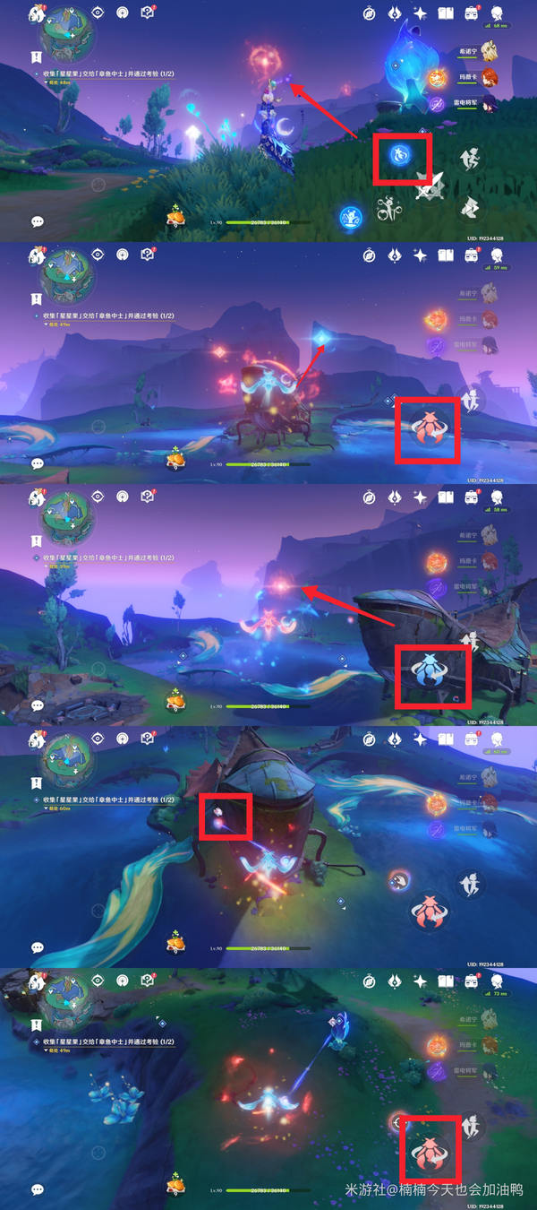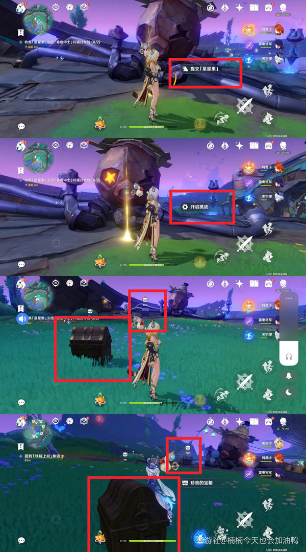 记得在两个章鱼旁边也有星星果,不要忘了收集,否则数量可能不足。然后交付给章鱼,完成两个简单的挑战