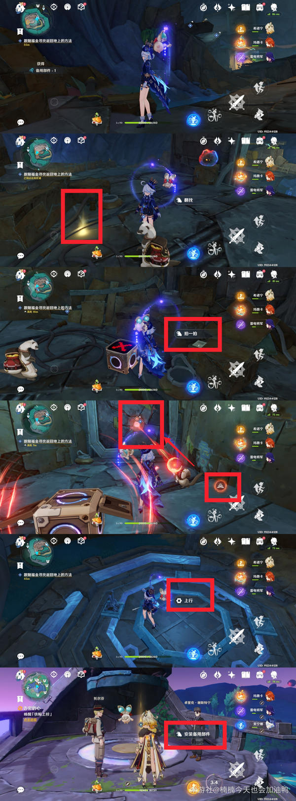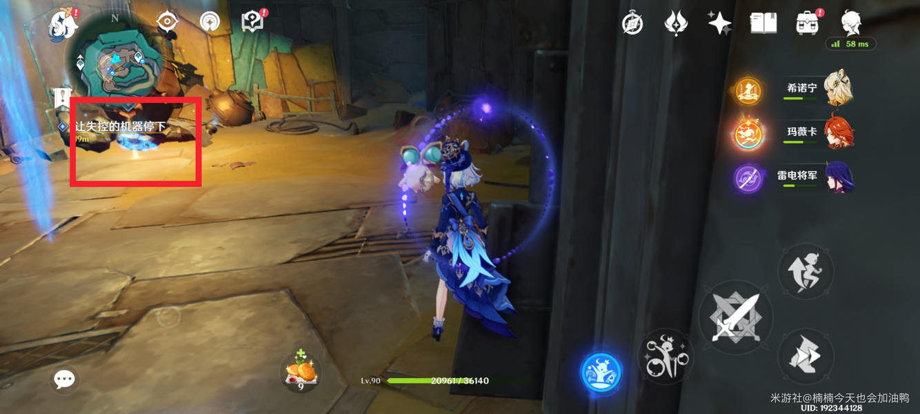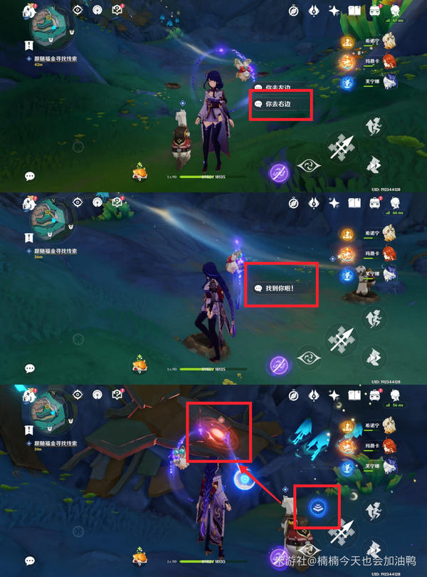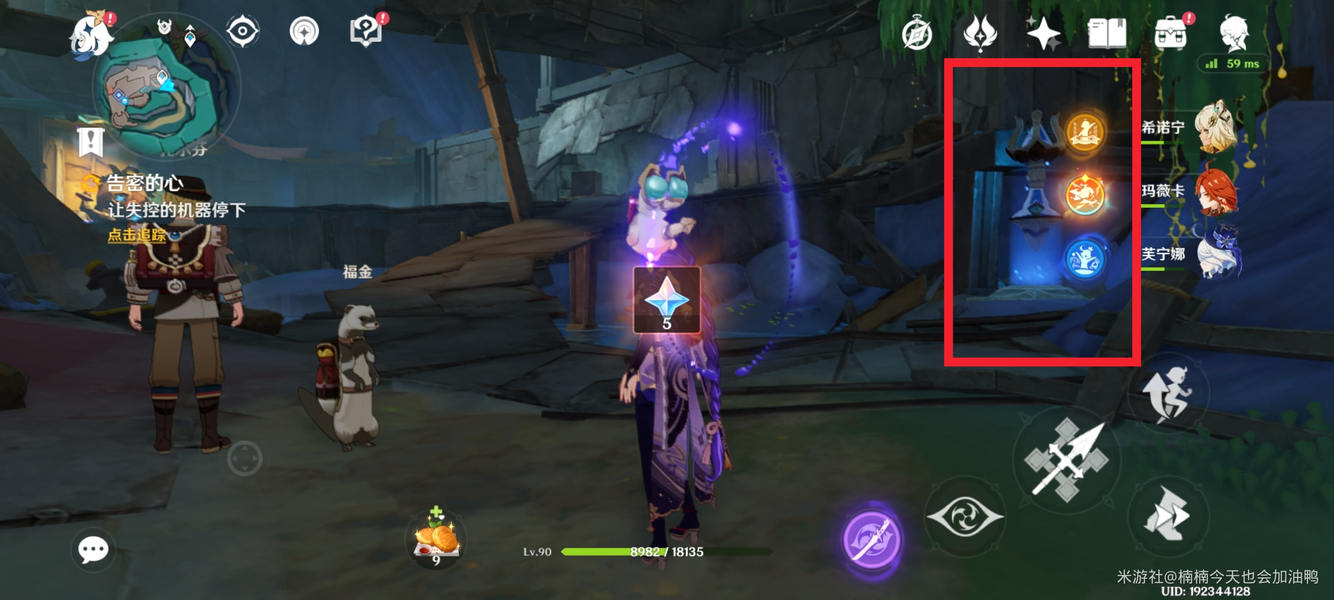到达地下后,继续跟随任务指引。我选择让盗宝鼬去右侧,角色与左侧的人对话,然后用月矩力破除障碍