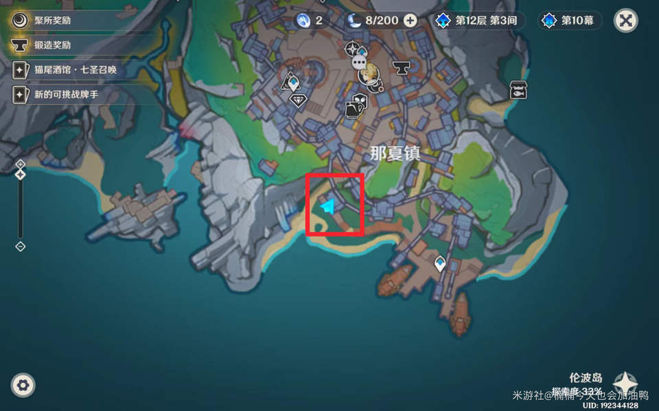 然后前往下图标记的小溪附近