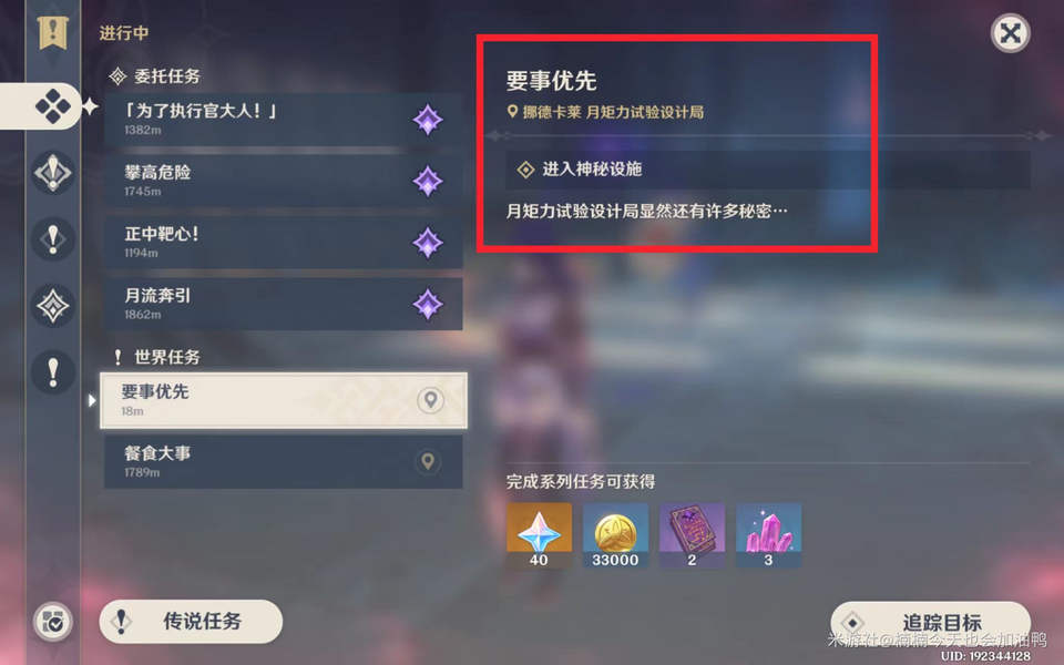 完成后,追踪任务返回并调查,击败敌人,调查高亮点以完成任务