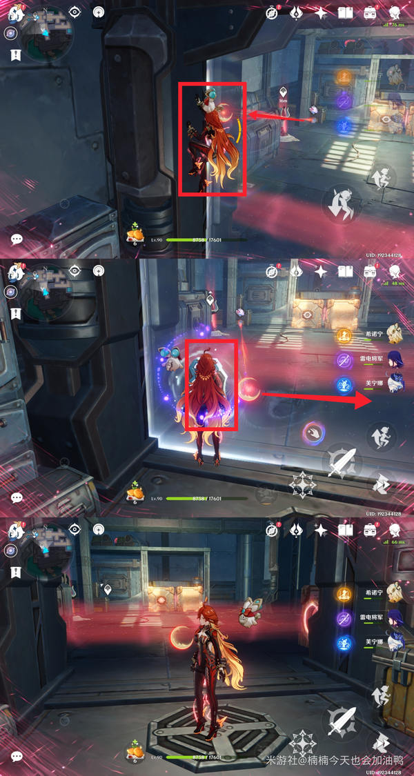 关于解密,我建议先爬得高一点,再用月矩力吸引门牌,之后按顺序从右到左滑过门禁,逐一破解各个屏障