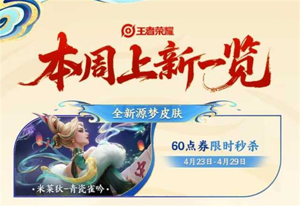以上就是羊托游小编为你带来的《王者荣耀》米莱狄青瓷雀吟上线时间介绍的全部内容,更多精彩游戏资讯攻略尽在羊托游手游网,感兴趣的小伙伴欢迎点击关注收藏本网站哦。
