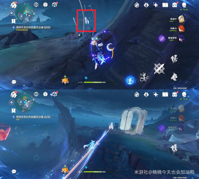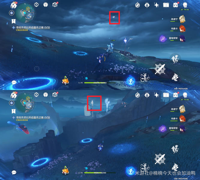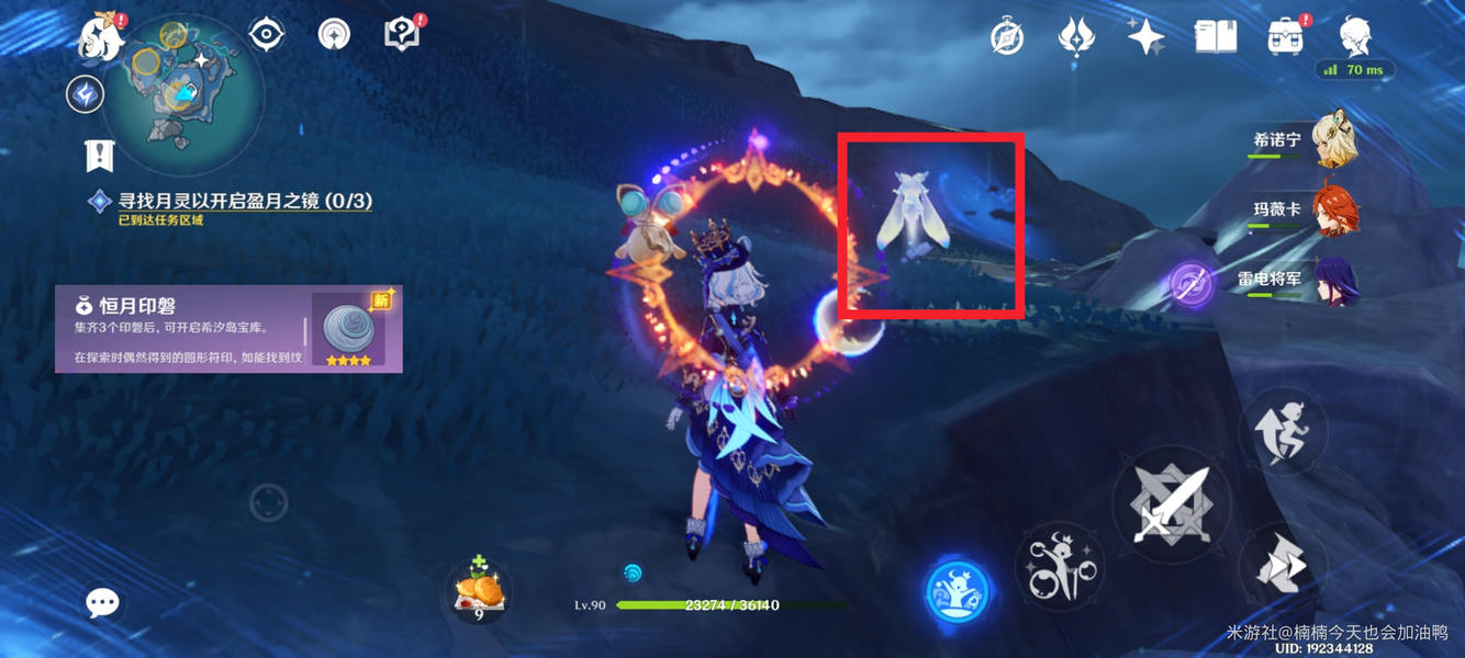 接着会出现三个点位的月灵,靠近即可将其送回