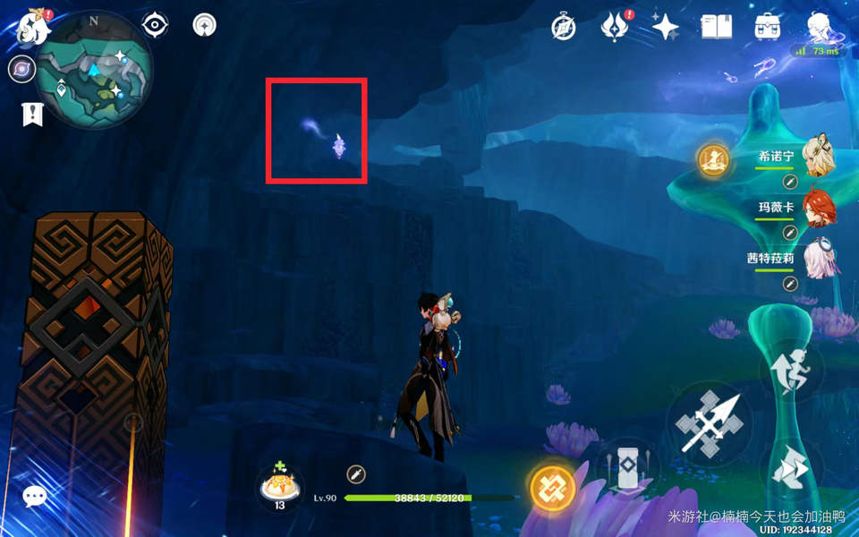 接着需要接触紫色雾气,这一步很关键,是该区域的主要解谜方式