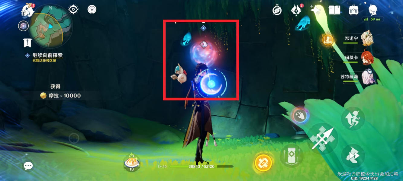 随后拾取这个红蓝双色的能量球