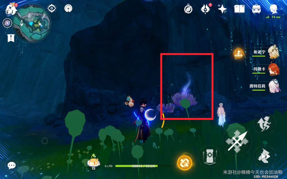 前方区域的解谜思路也是一样,需要寻找紫色雾气,有些藏在花朵中