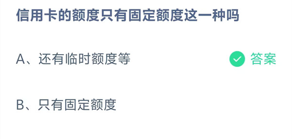 A:还有临时额度等 B:只有固定额度