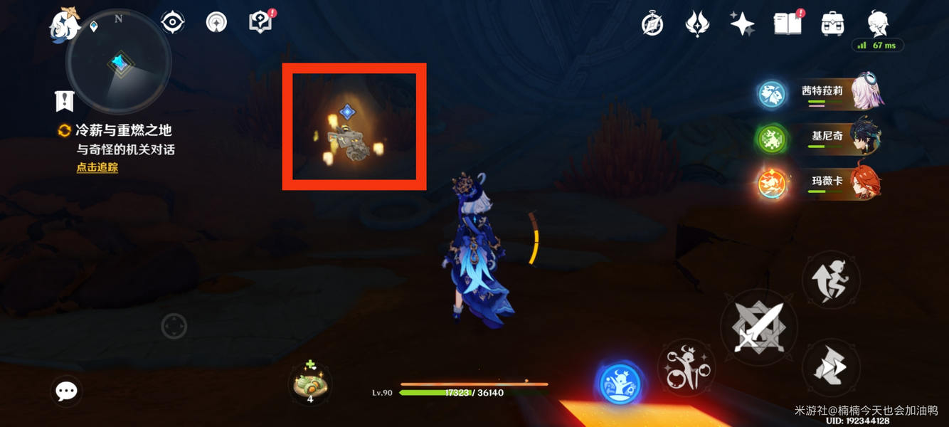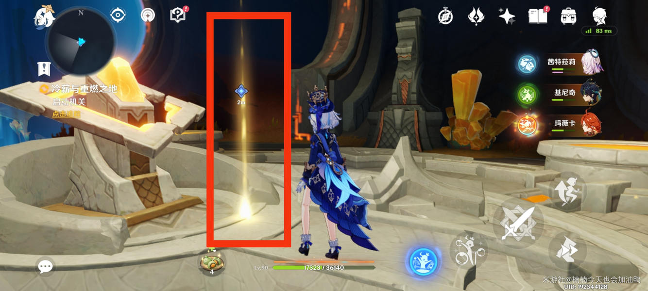 机关启动后,会发现两个铭文的位置(如果不打算拿宝箱或无关物品,可以直接前往任务点)。