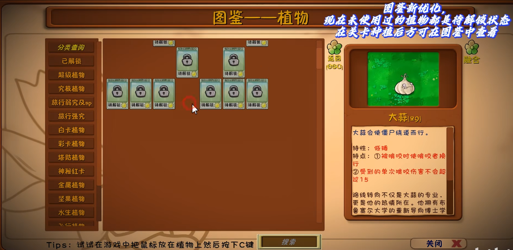 普通植物:惊喜黄金罐子、三线路灯花、魅惑花盆、流光双发射手、流光中继射手、流光机枪射手、辣椒小蘑菇、蒜毒豌豆射手、蒜毒双发射手、蒜毒裂荚射手、蒜毒机枪射手、火炬大喷菇、大嘴窝瓜。