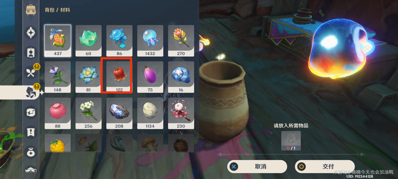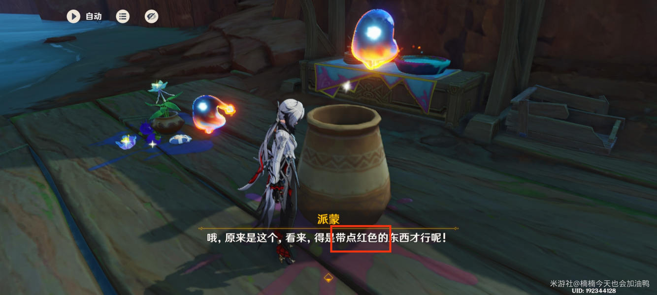 如果放入其他颜色的东西,会提示需要红色物品
