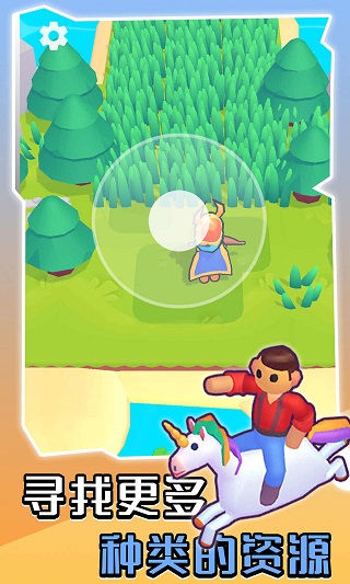 享受简单而有趣的游戏体验,并使用您的建筑技能更快地扩展岛屿,继续建造更多的建筑,扩展和探索岛屿,建造房屋和船只,每一种资源需要不同的工具来挖掘,并且每种工具也可以升级,以加快资源收集的速度,可以用金币升级你的游戏装备和建筑,或者继续探索地图,寻找更多类型的资源。