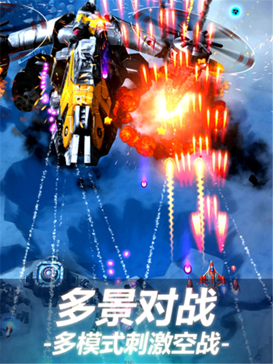 1、游戏中的战斗机、武器和敌人都有精美的特效设计,让玩家在战斗中享受一场视觉盛宴。