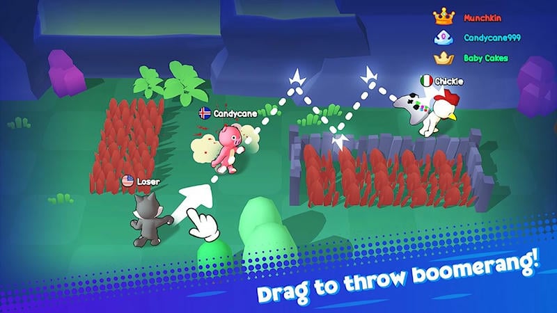 回旋镖大作战是一款以投掷回旋镖为核心战斗玩法的免费游戏。玩家可以控制他们的小动物角色在地图上充分展示他们的技能。投掷回飞镖后,他们可以反复弹跳通过地形击败所有的敌人。游戏操作简单,容易上手,可以给玩家带来很多乐趣。