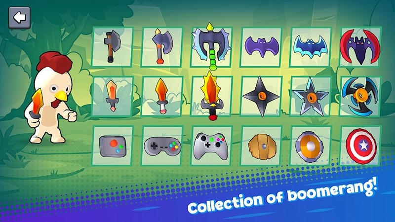 2、回旋镖大作战游戏提供了各种有趣的内容,让你投掷各种回旋镖,争取更多的积分来成功完成关卡。