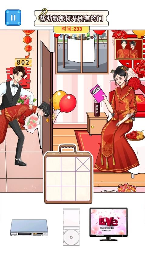 帮他见新娘是一款非常有趣的休闲通关游戏。在挑战中,玩家需要使用各种方法帮助新郎遇见他的新娘。内容包含许多机制和相关的测试形式。要解决它,你需要使用超级智能,依靠自己的智能来完成相应的关卡。您还将注意到关键信息。房子周围也可能出现多扇门。你需要用钥匙才能打开它们。你可以在整个房子外面寻找钥匙。这个过程并不简单。