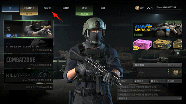 4、再点【军械库】,进入武器库界面浏览装备。
