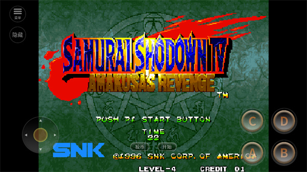 1、下载安装侍魂 4,进入后投币并点击 “开始”。
